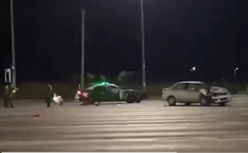 Tras el impacto, el conductor del auto descendió del móvil y tras sacarse la polera profirió insultos y amenazas en contra de los Carabineros.