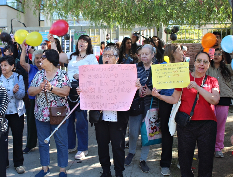 La acción tuvo como propósito expresar públicamente la preocupación y el rechazo al congelamiento del per cápita basal para el 2026 y a la eliminación del Programa Más Adulto Mayor Autovalente.