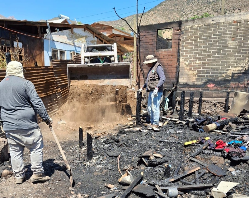 RINCONADA (26/11/2025).- Los seis integrantes de una familia resultaron damnificados al perder todas sus pertenencias y enseres a consecuencia del incendio que consumió la totalidad de su vivienda, el que se registró en el sector Mina Caracoles.