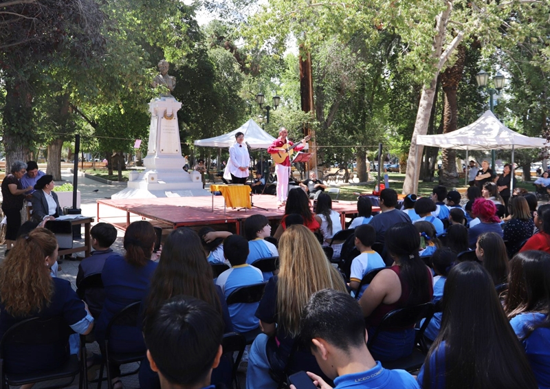 Durante la mañana del martes en Plaza de Armas se contó con la representación de la poetisa por parte de la actriz Gabriela Cuadra, hubo presentación de kamishibai, de cuenteros y narradores orales de Aconcagua, declamación de poemas, música, stand con libros de Gabriela Mistral por parte de la Biblioteca de Los Andes y bibliotecas comunitarias,