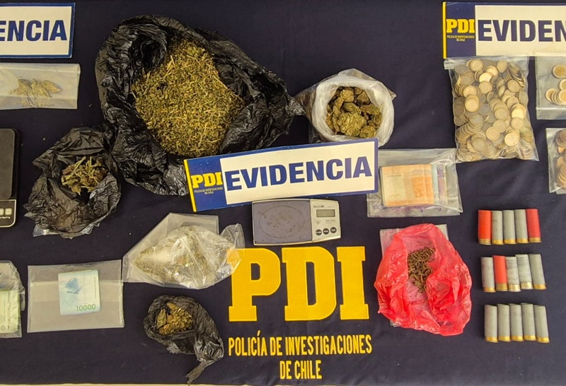 Durante el procedimiento se incautaron 276,3 gramos de cannabis sativa, además de $410.000 en dinero en efectivo, dos balanzas digitales utilizadas para la dosificación de la droga y munición correspondiente a 15 cartuchos calibre 12 y un cartucho calibre .25, el avalúo total de la droga incautada asciende a $1.381.500.