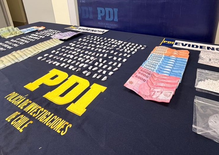 Como parte del operativo, la PDI incautó 298 mil pesos en dinero en efectivo, 264 envoltorios de cocaína base, con un peso de 43,56 gramos, además de una bolsa y un recipiente con la misma sustancia, que alcanzó un pesaje de 33,53 gramos, sustancia ilícita avaluada en cerca de 400 mil pesos.