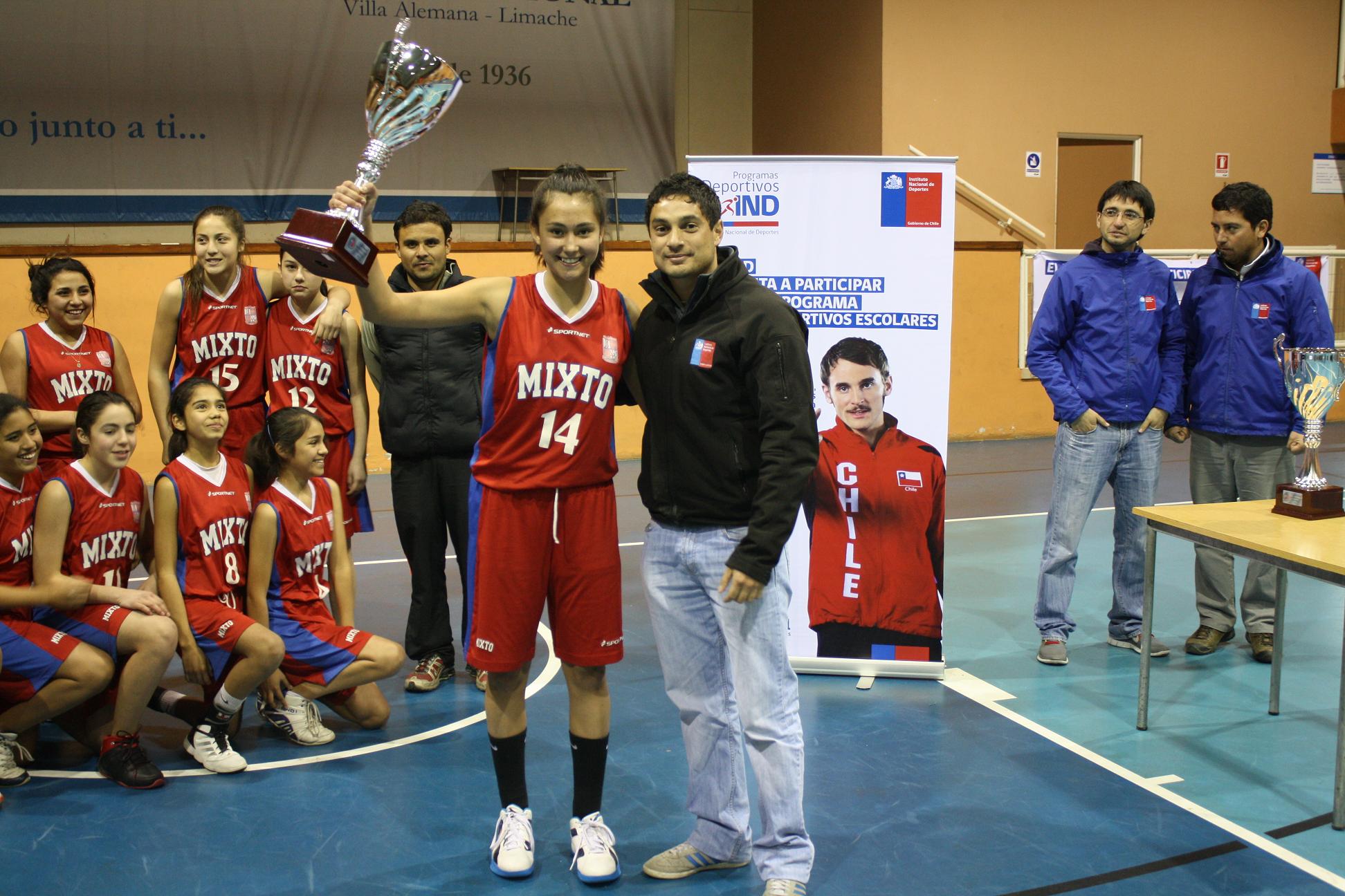 LOS ANDES.- En el gimnasio Polideportivo del Colegio Nacional de Villa Alemana se disputó desde el lunes el torneo provincial de baloncesto sub 14 (serie 98-99) que determinó a los campeones en damas y varones y que representaran a la región en los campeonato nacionales escolares a disputarse en la región de Magallanes.