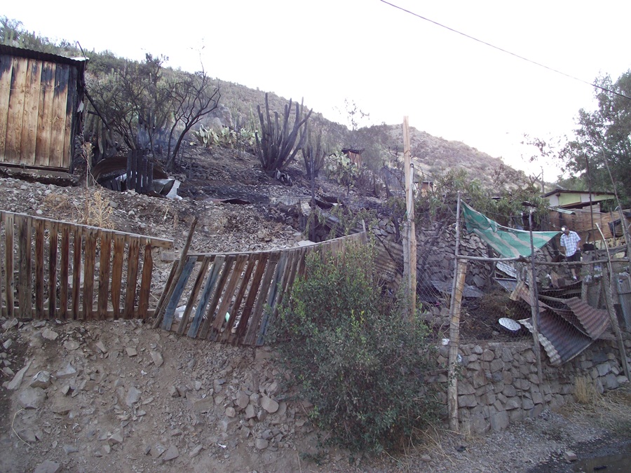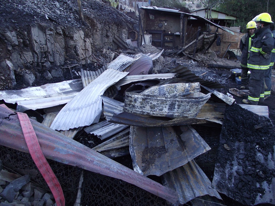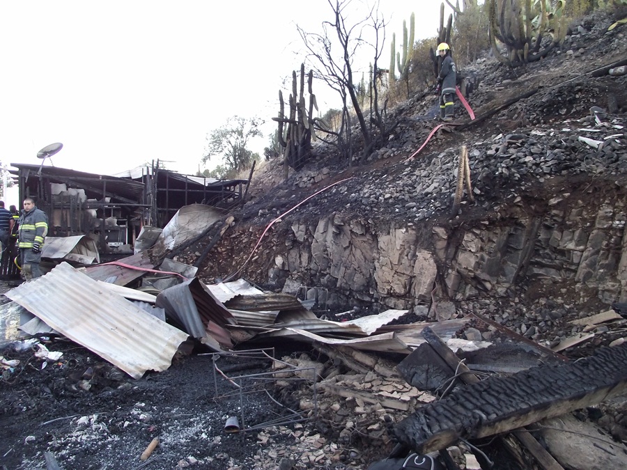 El siniestro se inició a eso de las 16 horas del Domingo afectando a dos inmuebles ubicados en la calle Chañarcillo del sector de Puntilla del Ají en el límite con la comuna de San Esteban, pertenecientes a las familias de Marcos Perez Barraza y Cármen Henríquez López.