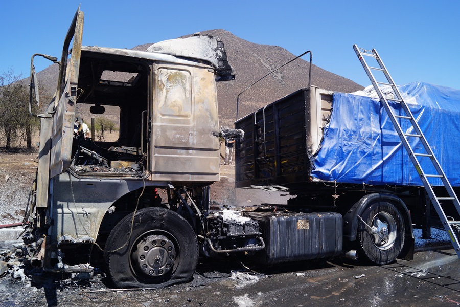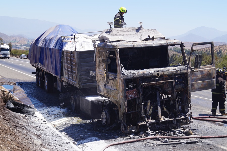 El Capitán de la Segunda Compañía, Joel Muñoz Monroy, indicó que a la llegada de las primeras unidades el camión tenía su cabina completamente envuelta en llamas, “y de hecho el mismo conductor nos decía que le parecía extraño porque hacía no más allá de siete minutos que había salido del puerto terrestre y se dirigía a su punto de destino en Santiago”.