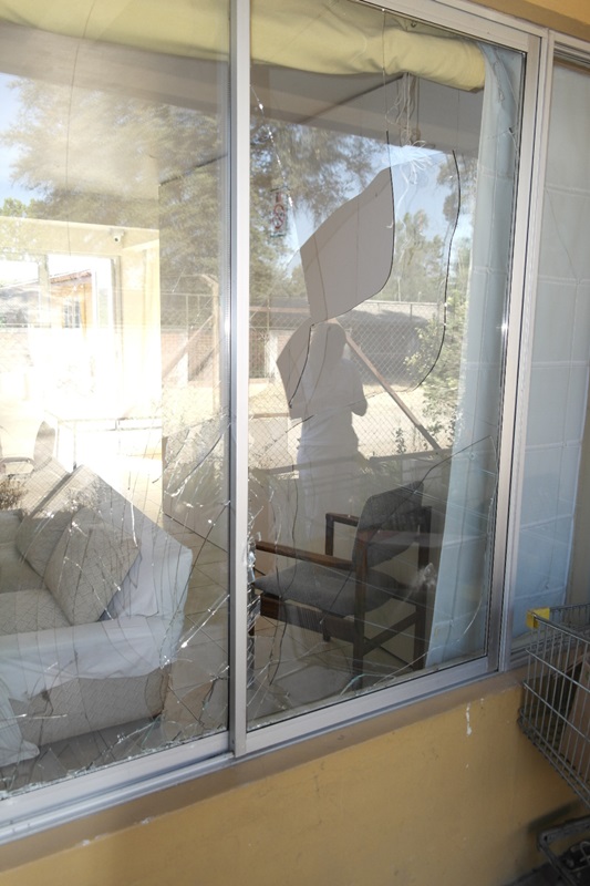 A raíz de los piedrazos resultaron dañados los vidrios de los ventanales de una pequeña sala de estar contigua a la cocina y un corredor.