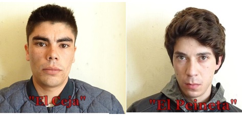 El Jefe de la Brigada de Robos de la PDI, Subprefecto Juan Sánchez (Ver foto ampliada), precisó que la detención de C.A.V.M. (22) , alias “El Cejas” y A.G.I.V. (23), apodado como “El Peineta”, se produjo en el complejo Los Libertadores en virtud de ordenes de detención por delitos de robo con violencia, robo en lugar habitado y tenencia ilegal de arma de fuego.