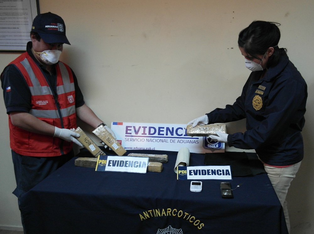 Cerca de las 4 horas, durante una fiscalización de rutina que efectuaban funcionarios del Servicio Nacional de Aduanas a los pasajeros de un bus de la empresa Tur Bus procedente de Mendoza con destino a Santiago, detectaron que uno de ellos se había apartado de la fila de los equipajes de mano y se notaba extremadamente nervioso.