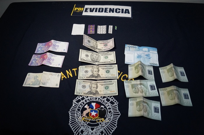 Junto a la droga fuero incautados 140 Dólares, 25 mil pesos chilenos y 205 pesos argentinos, además de un teléfono celular que será sometido a las pericias correspondientes.