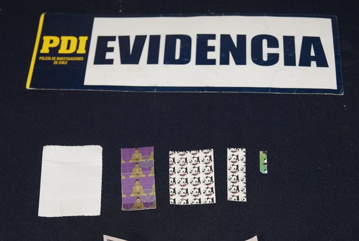El Jefe de la Brigada Antinarcóticos, Subprefecto Guillermo Gálvez, indicó que durante la revisión de sus vestimentas los detectives hallaron bajo la plantilla del zapato derecho cinco láminas contenedoras de 177 dos de LSD que el sujeto comercializaría en la ciudad de Santiago.
