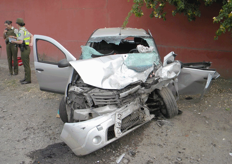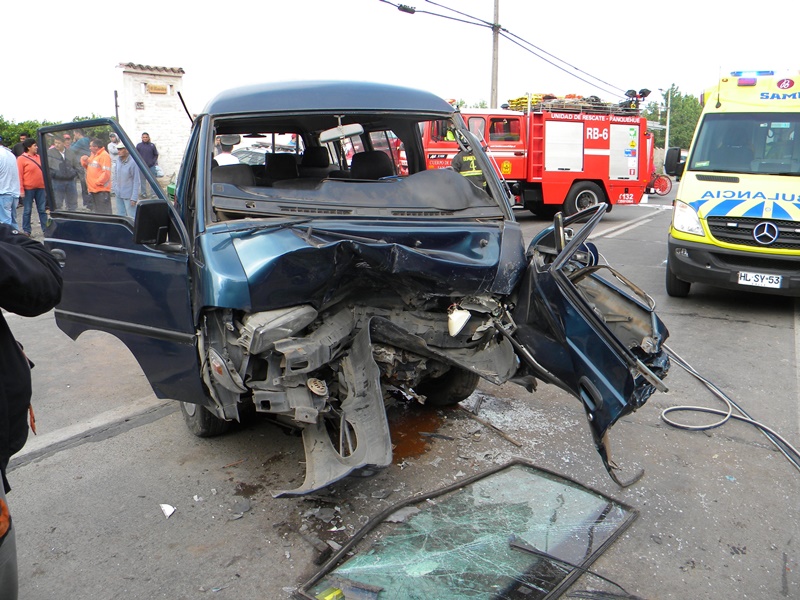 El accidente se produjo pasadas las 8 horas, cuando un automóvil Renault modelo Sandero, matrícula CV PT 31, que se dirigía de oriente a poniente impactó de manera frontal al furgón Kia, patente PL 20-67, que iba en sentido opuesto transportando trabajadores temporeros hacia una agrícola del sector.