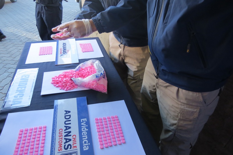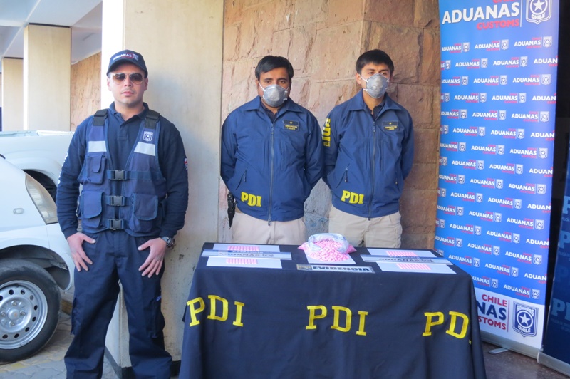 LOS ANDES (14/05/2019).- Gracias al trabajo coordinado entre Aduanas y PDI se logró la incautación de más de dos mil comprimidos de la potente droga MDMA similar al Extasis que eran transportados por un hombre de nacionalidad Argentina escondida entre su ropa interior.