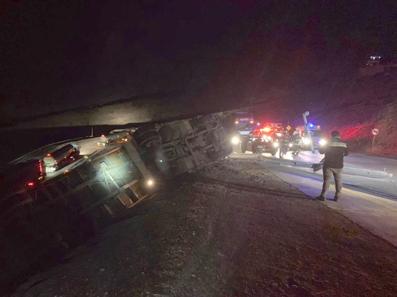 LOS ANDES (19/01/2021).- De milagro salvó el conductor de un camión de transporte internacional que la madrugada de este viernes volcó en la cuesta Caracoles quedando a punto de desbarrancar.