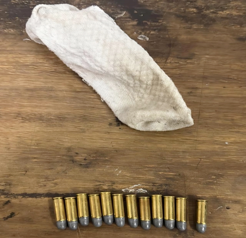 Además, ocultos bajo el calcetín de la pierna izquierda de L.A.A.Q. se encontraron doce municiones calibre 32 sin percutar.