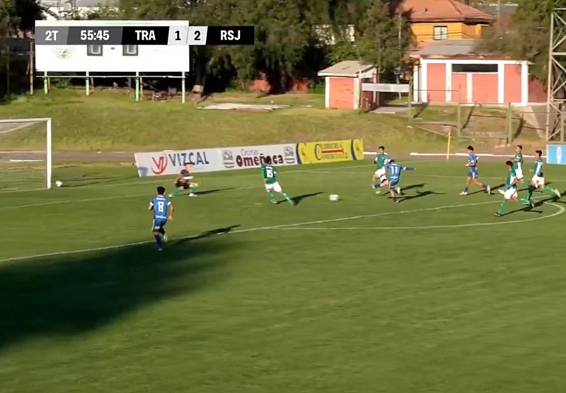 En una acción en ataque, Felipe Durán recibió un pase en profundidad e ingresó por el centro del área, definiendo con un potente remante rasante ante la salida del portero local, anotando su segunda conquista personal y el 2-1 para Real San Joaquín.
