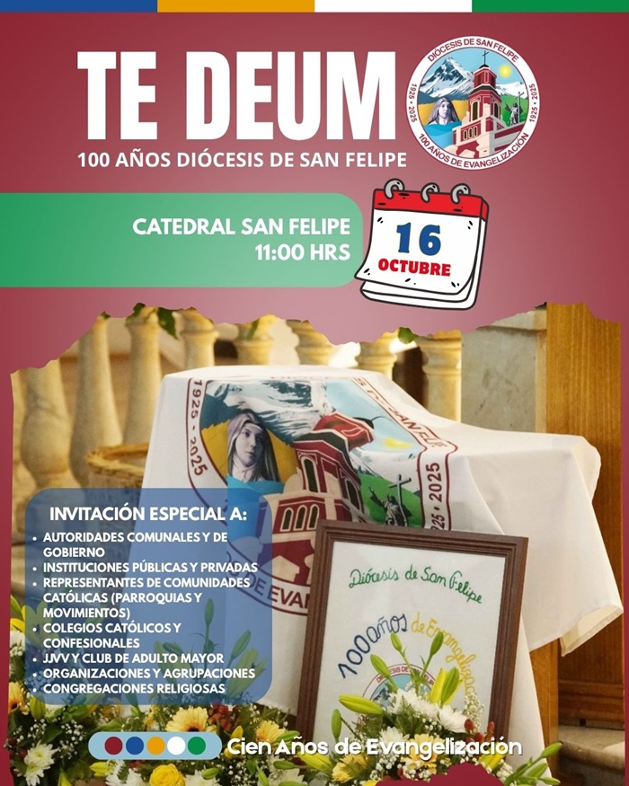 De esta manera, la Diócesis de San Felipe se encamina a cerrar su Centenario con una invitación abierta a todos sus fieles, comunidades, instituciones y familias, para reunirse, agradecer y proyectar juntos el futuro de una Iglesia viva, alegre y misionera, que sigue siendo signo de esperanza para el Valle de Aconcagua y el Valle de Petorca.
