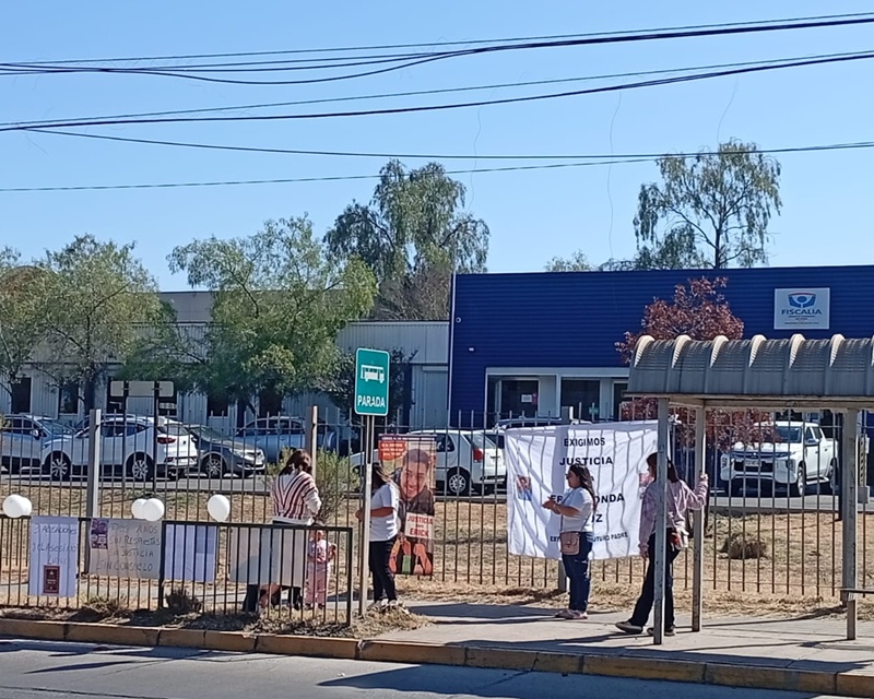 LOS ANDES (14/10/2025).- La familia de Erick Ronda Cruz, joven murió asesinado por un excarabinero en la comuna de San Esteban llegó hasta el frontis de la Fiscalía Local de Los Andes para protestar y exigir justicia por este crimen.
