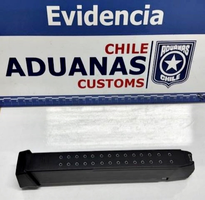 LOS ANDES (04/11/2025).- El conductor de un bus fue detenido en el complejo Los Libertadores al ser sorprendido llevando oculto un cargador de fusil de guerra.