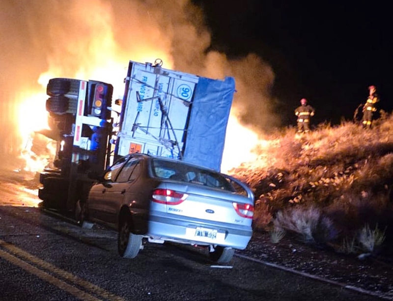El hecho también dejó lesionados de diversa consideración a los cuatro integrantes de una familia mendocina al chocar contra el acoplado del camión chileno siniestrado.