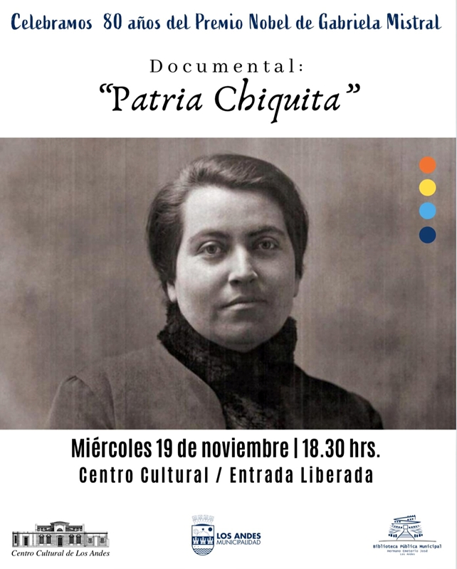 Este miércoles, a las 18:30 horas, se exhibirá el documental “Patria Chiquita” enmarcado en la celebración de los 80 años del Premio Nobel de Literatura de Gabriela Mistral.
