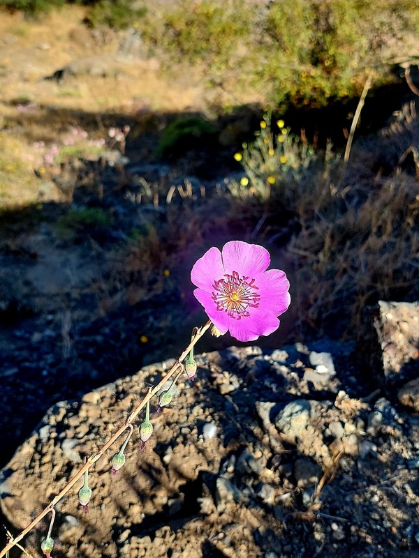 Con el tiempo se ha puesto bueno para las caminatas y los fines de semana los aprovecha en recorrer los pies de monte y estribaciones, que tenemos a la mano. Las Vizcachas, camino a Vilcuya fue su ruta donde admiraba grandes cantidades de flores, no digamos que “desierto florido”, pero para una acuarela alcanza y sobra.