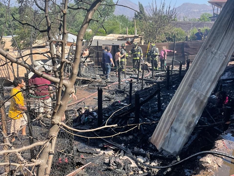 RINCONADA (26/11/2025).- Los seis integrantes de una familia resultaron damnificados al perder todas sus pertenencias y enseres a consecuencia del incendio que consumió la totalidad de su vivienda, el que se registró en el sector Mina Caracoles.
