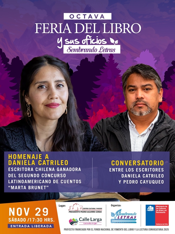 Este sábado 29 los asistentes tendrán la oportunidad de conocer más a fondo a Daniela Catrileo y para eso le acompañará en la entrevista un invitado de lujo, como es periodista y escritor mapuche Pedro Cayuqueo Millaqueo, quien ha realizado pasantías en comunicación y derechos indígenas en institutos y universidades de diversos países, cuyas crónicas, entrevistas y análisis son publicados periódicamente por diversos medios de comunicación chilenos y extranjeros. Además, es un destacado escritor, principalmente conocido por su obra "Historia secreta mapuche", entre muchas otras.