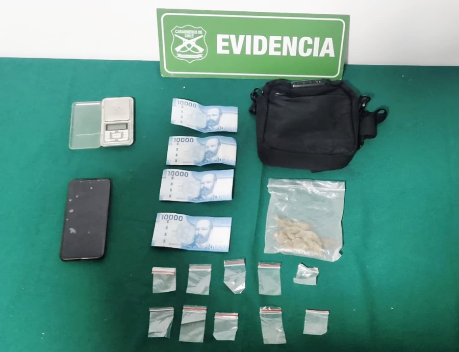 Al revisar el contenido del bolso encontraron 10 bolsas transparentes contendoras de cannabis sativa, una pesa gramera y la suma de 40 mil pesos en efectivo producto de la venta de droga.