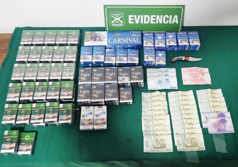 Luego fue fiscalizada la mujer se encontró en su poder De esta forma se acercaron a fiscalizarlos, encontrando en poder de la mujer 102 cajetillas de cigarrillos que no se comercializan en Chile, un cortaplumas y una hoja de acero afilada.