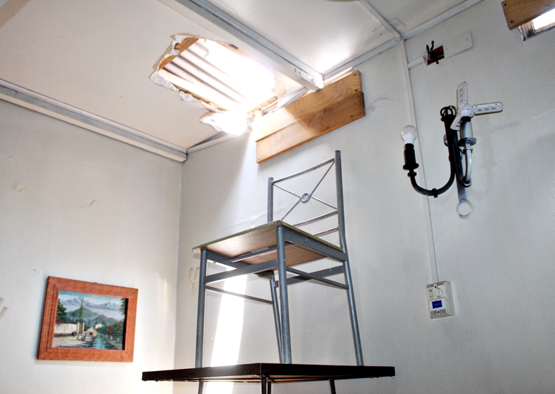 Al llegar al comedor la dueña comprobó que los delincuentes habían acomodado y montado una mesa y una silla que usaron para subirse y salir por el mismo forado que habían efectuado.