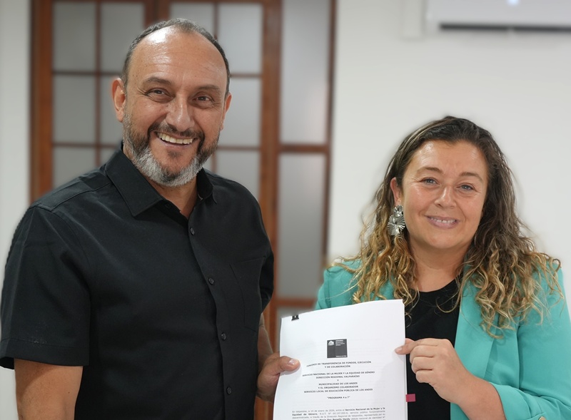 LOS ANDES (22/01/2026).- Con el firme objetivo de fortalecer el apoyo a las familias y garantizar un entorno seguro para los estudiantes del territorio, el Servicio Local de Educación Pública (SLEP) Los Andes y el Servicio Nacional de la Mujer y la Equidad de Género (SERNAMEG) de la Región de Valparaíso formalizaron la firma de un convenio de colaboración para la ejecución del programa "4 a 7".