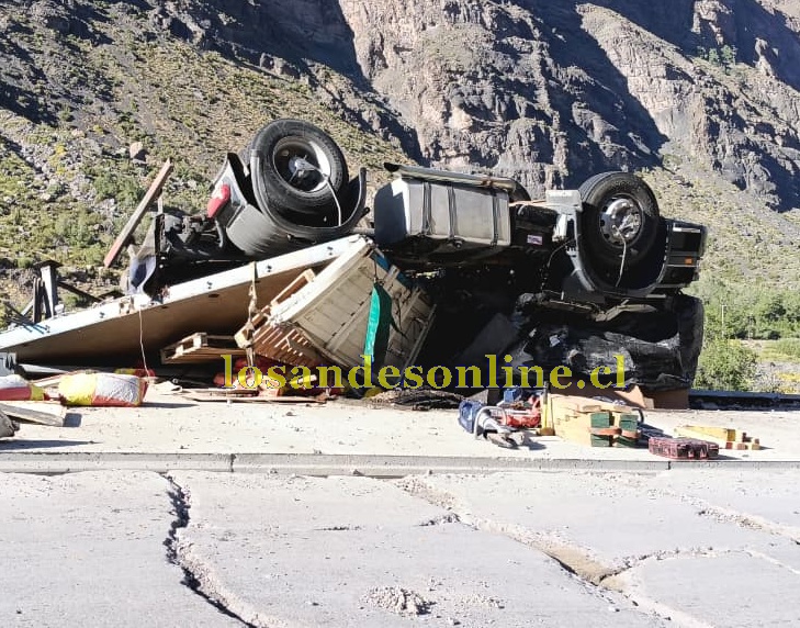 LOS ANDES (27/01/206).- Una persona fallecida fue el saldo quedó el volcamiento de un camión con patente argentina en la ruta internacional Los Andes-Mendiza