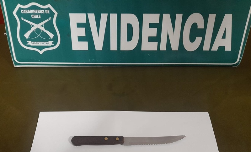 En tanto, el agresor se dio a la fuga, pero una vez hecha la denuncia personal de Carabineros inició un patrullaje por la inmediaciones logrando finalmente su captura en la avenida Argentina esquina Maipú, incautado el cuchillo como medio de prueba.
