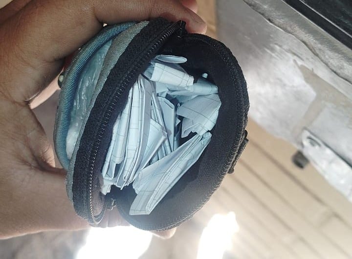 Posteriormente se reviso le monedero donde se encontraron 24 envoltorios de color blanco conteniendo 18 gramos de cocaína y otra bolsa con una especie de piedra que tuvo un peso de 17 gramos de la misma sustancia ilícita.