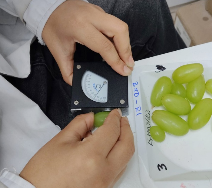 Es ahí donde el proyecto PATI de uva de mesa enfrenta su etapa decisiva. Las muestras cosechadas, tanto las del riego eficiente como las del manejo tradicional, fueron enviadas al laboratorio de postcosecha de la Universidad de Chile. Aquí se evalúan parámetros críticos: calibre, firmeza, grados Brix, color y estado del raquis.