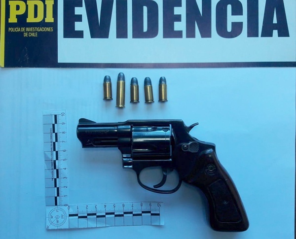 Fue durante diligencias de su especialidad que los detectives llegaron hasta el domicilio del sujeto en Río Blanco y tras registrar el inmueble encontraron al interior de un baúl un revólver marca Rossi calibre 38 con su número de serie borrado, además de dos cartuchos de munición del mismo calibre y otro de calibre 7.62.
