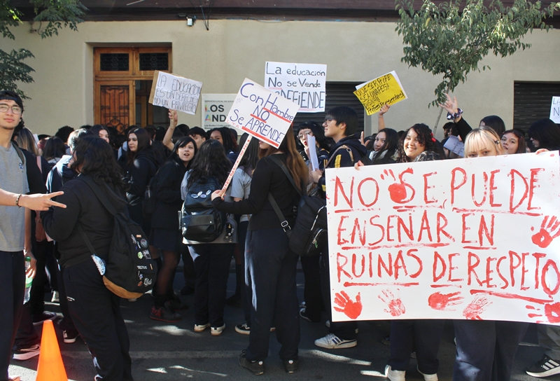 Diego Arriagada Guzmán, presidente del Centro de Alumnos del Liceo Maximiliano Salas, dijo que decidieron organizarse y salir a protestar públicamente “para que se escuche la voz de los estudiantes”.
