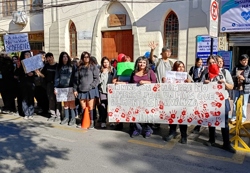 LOS ANDES (29/04/2026).- Una manifestación pacífica realizaron la mañana de este miércoles alumnos de los liceos Maximiliano Salas Marchán, Técnico Amancay y República Argentina, además del apoyo de algunos jóvenes del Liceo Particular Mixto y Colegio San Sebastián.