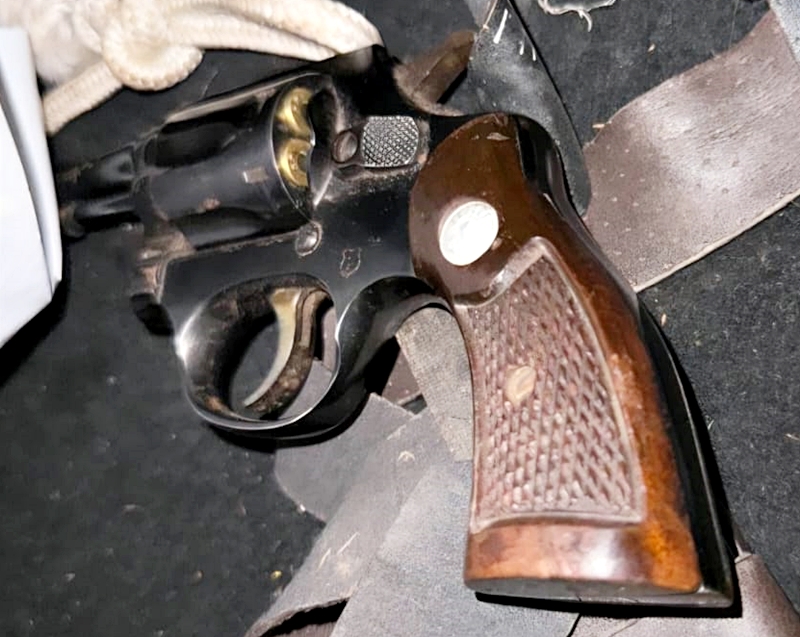 Posteriormente al revisar el maletero encontraron un revólver marca Taurus calibre 32 con seis municiones en su recamara, un cuchillo cocinero, un bate de beisbol y una serie de herramientas conocidas para ser usadas en la comisión de ilícitos.