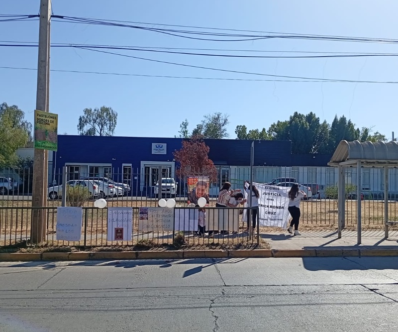 LOS ANDES (14/10/2025).- La familia de Erick Ronda Cruz, joven murió asesinado por un excarabinero en la comuna de San Esteban llegó hasta el frontis de la Fiscalía Local de Los Andes para protestar y exigir justicia por este crimen.