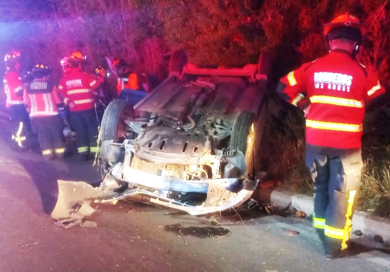 CALLE LARGA (15/10/2025).- Dos jóvenes resultaron lesionados, uno de ellos de carácter grave, luego que el conductor del vehículo en el que se movilizaban protagonizara un choque y posterior volcamiento en la avenida Pascual Baburizza, accidente de tránsito que se registró alrededor de las 21:30 horas del martes.
