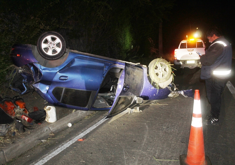 Conforme a los antecedentes policiales recabados en el lugar por Los Andes Online y del Ministerio Público, por la citada vía en dirección al norte circulaba el automóvil marca Ranault modelo Symbol Privilege, patente HBZR-87, el que era guiado por el temporero E.P.C.T., de 30 años, nacionalidad peruana y domiciliado en Los Andes, quien salvó ileso y fue detenido por personal de Carabinero al constatar que lo hacía en estado de ebriedad.
