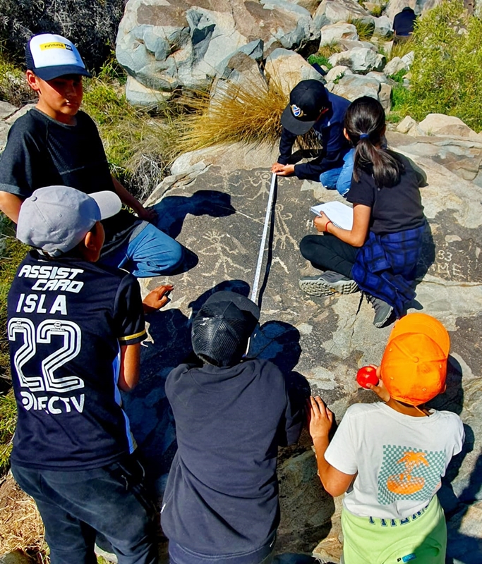 “Estamos recorriendo los cerros y parte de la cadena montañosa del camino internacional, buscando evidencias y haciendo un catastro de petroglifos en sectores como Río Colorado, Vilcuya, Los Chacayes y Cerro Mercacha”.