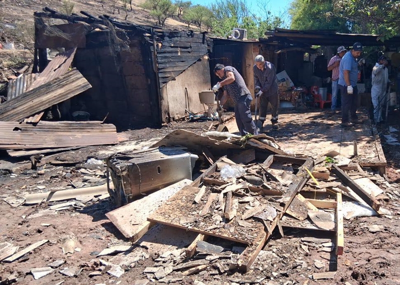 RINCONADA (28/10/2025).- Una casa completamente destruida, la segunda con severos daños en más del 50% y una familia damnificada conformada por tres integrantes, fueron las consecuencias que dejó el incendio que se registró la tarde del lunes en la ladera de un cerro en el sector Las Bandurrias.