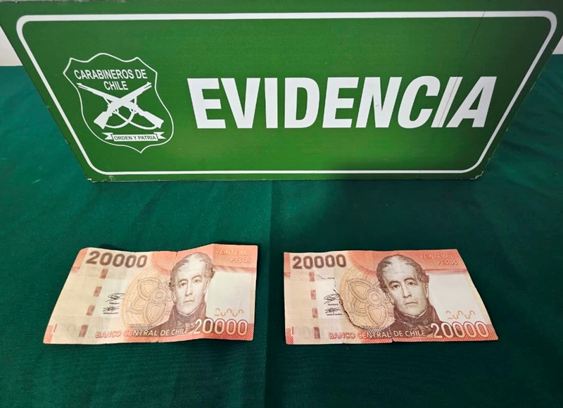 LOS ANDES (04/12/2025).- Un menor de edad fue detenido la mañana de este jueves por personal de la Sección de Investigación Policial (SIP) de Carabineros, al tratar de estafar a comerciantes andinos pagando compras con billetes falsos de $20.000.