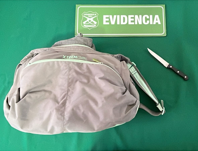 Sin embargo, esta no era la única arma que portaba, ya que al revisar un bolso que tenía consigo fue hallado un cuchillo de mesa que también le fue requisado.