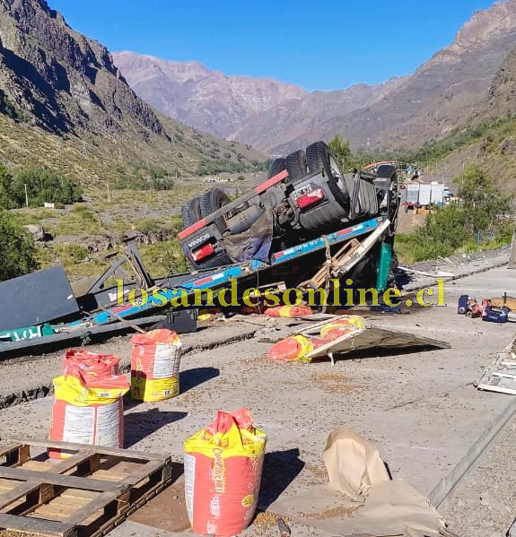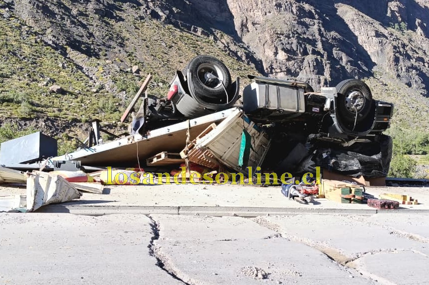 LOS ANDES (27/01/206).- Una persona fallecida fue el saldo quedó el volcamiento de un camión con patente argentina en la ruta internacional Los Andes-Mendiza