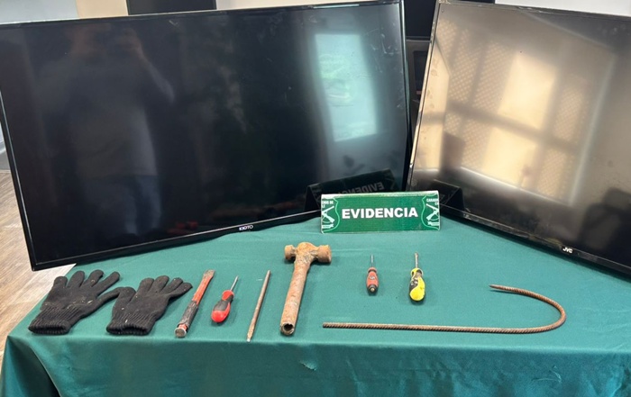 Junto a ello se incautaron las herramientas y otros elementos usados por los ladrones para cometer el delito.