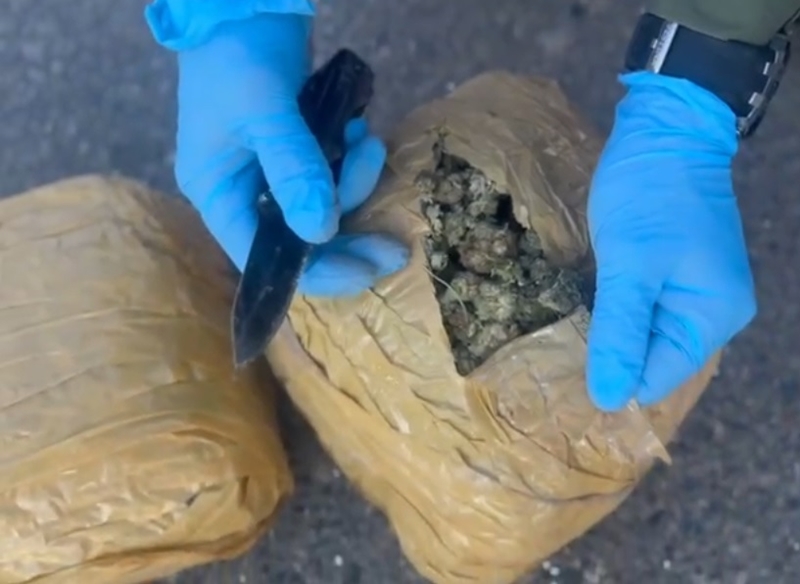 El can detector de drogas Kobu del Emblema Verde marcó la parte posterior del vehículo y al revisarlo fueron encontrados diez sacos de nylon conteniendo 302 paquetes ovalados envueltos en cinta adhesiva que contenían en total 316 kilos 75 gramos de cannabis sativa elaborada.