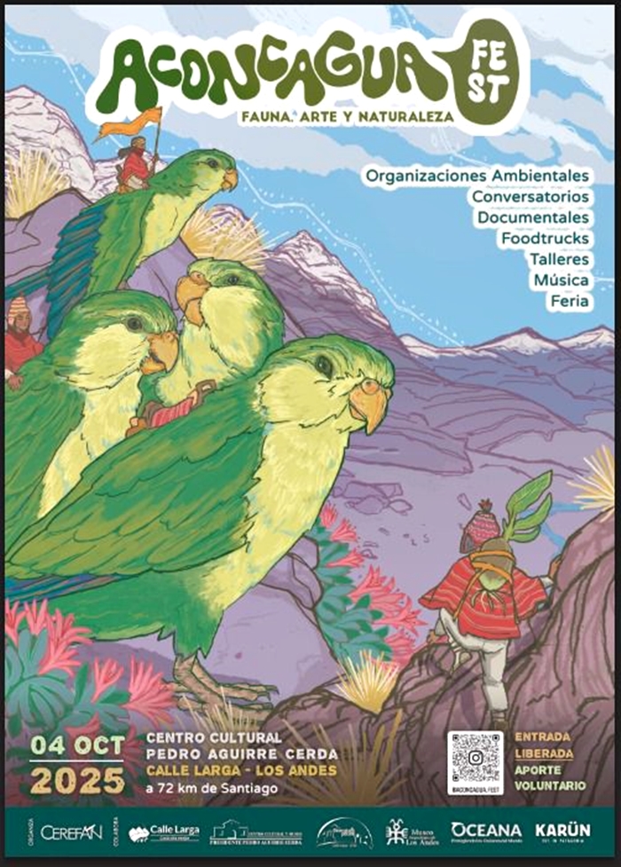 CALLE LARGA (04/10/2025).- La segunda edición del Aconcagua Fest se realiza este sábado en el Centro Cultural y Museo Presidente Pedro Aguirre Cerda en el sector Pocuro, que organiza el Centro de Rehabilitación de Fauna Andina (Cerefan) con la participación de más 30 organizaciones medioambientales y el desarrollo de un nutrido programa de actividades para toda la familia.